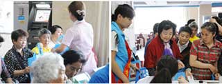 在活动现场,滨江社区居委会志愿者和医院志愿者有序的为老人们提供服务。赣医皮肤病研究院的医生向前来就诊的老年人耐心询问了身体基本情况、病史、相关就医情况,并嘱咐有关注意事项。护士们则有序地为30多位老人测量血压、生化常规检验、心电图检测等。此次活动受到了滨江社区居委会工作人员和老人们的热烈欢迎,大家都感到非常满意,纷纷夸赞这次活动办得好,不仅让老人们享受到免费健康查体,更让老人们学到各种预防疾病的小知识。