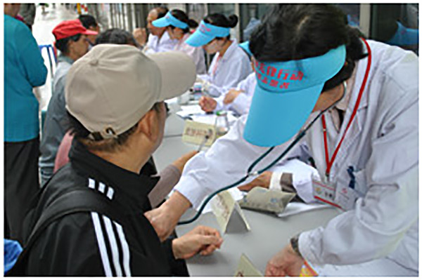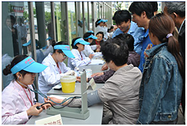 医护人员现场给前来的市民免费测量血压