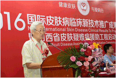 “2016国际皮肤病临床新技术推广成果学术报告会”由中国医疗保健国际合作推广专业委员会、全国皮肤病防治工程委员会联合举办,原国家卫生部副部长曹荣桂、孙隆椿、原北京大学副校长吕忠生,国际皮肤病性病协会会员乔纳森·道斯教授、英国皮肤医师协会会员托马斯·麦基教授、北京协和医院皮肤科教授李晓梅、北京大学人民医院中医皮肤科尹东辉教授、中国医科大学附属第一医院原皮肤科主任马在墀教授、北京人民医院尹东辉、广东省老教授协会皮肤性病研究会常委卢植生教授、加拿大皮肤病科医师协会约瑟夫·布莱辛、美国皮肤外科协会乔治.罗伯特.瑞克次等数十位皮肤病专家受邀出席会议。